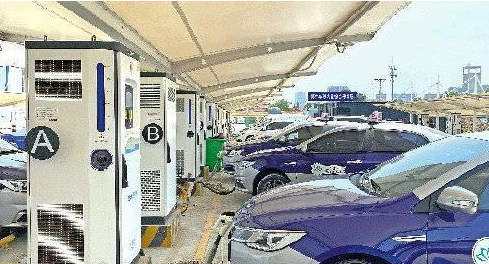 6月22日,記者再次來到現(xiàn)場探訪:與去年的冷清場景不同,充電站如今頗為繁忙,東側(cè)的20多個充電樁前,20多輛新能源車正在充電。從車輛的外觀及車身標(biāo)識上看,充電的新能源汽車中,大半數(shù)以上是出租車;此外還有一小部分是網(wǎng)約車與貨運面包車;私家車較少,僅有一輛。
