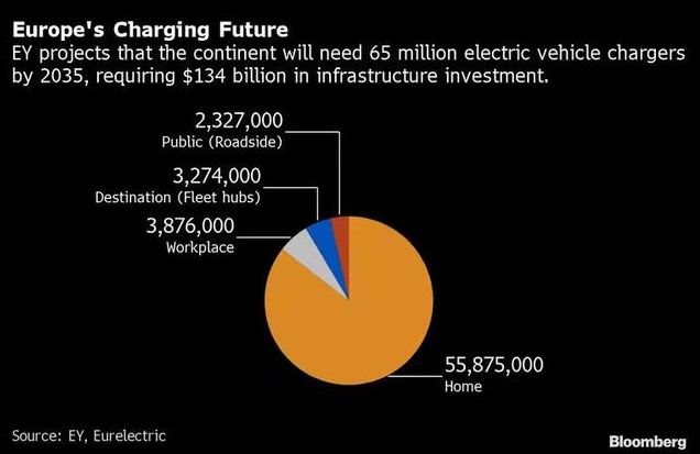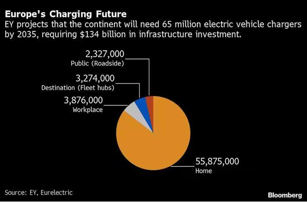 安永估計(jì),歐洲大陸預(yù)計(jì)將需要6500萬(wàn)個(gè)充電樁來(lái)服務(wù)這些電動(dòng)車,其中,85%的充電樁將安裝在私人家中。