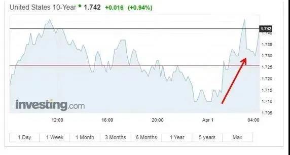 10年期美債收益率日內(nèi)轉(zhuǎn)跌1個(gè)基點(diǎn),交投1.716%,隨后重返1.74%并日內(nèi)轉(zhuǎn)漲,昨日一度上破1.77%并創(chuàng)14個(gè)月新高。