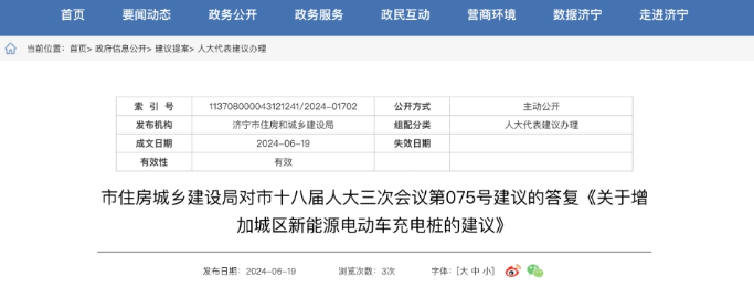 收藏本站 | 聯(lián)系我們國(guó)際能源網(wǎng)/充換電頭條(微信公眾號(hào):chd2005s)獲悉,2024年6月19日,山東省濟(jì)寧市住房城鄉(xiāng)建設(shè)局對(duì)市十八屆人大三次會(huì)議第075號(hào)建議的答復(fù)《關(guān)于增加城區(qū)新能源電動(dòng)車(chē)充電樁的建議》發(fā)布。
